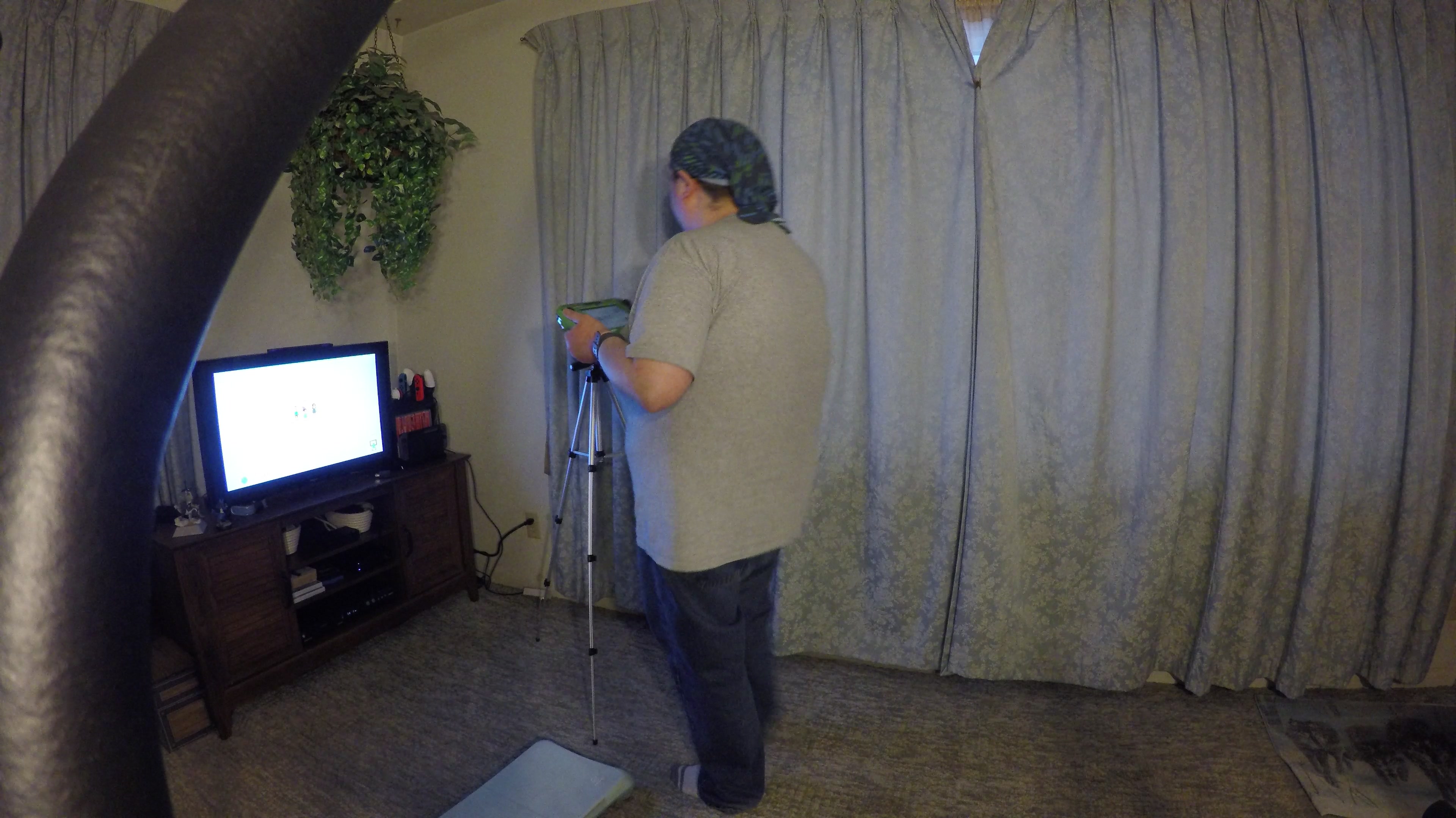My 360 Fusion, on the tripod sitting almost directly in front of the entertainment center, fared a little better but the TV image was still mostly white with no ability to actually let my viewers decipher what I’m seeing. Even once I find a fix for that dilemma, there will be the matter of A) copying the video files to my computer so I can edit (two memory cards for the Fusion, and the official app doesn’t like to connect to the camera, so until I find a reader that will take both cards at once I’m stuck waiting for one card to copy over before I can move to the next), and editing them into a useful form. I had planned on using the main GoPro for the “fixed” position that shows me and the gameplay footage, and using the Fusion to let my viewers choose which they’d rather see, but now I need to explore other options unless I can find a way to make this one work.