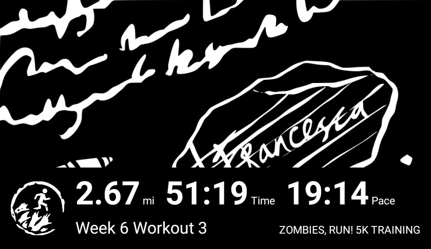 I finished out the last two days of “week 6” in the C25K app via two days off from work (going out in the afternoon evening due to changes in my work schedule instead of my original “routine” of doing it first thing in the morning):