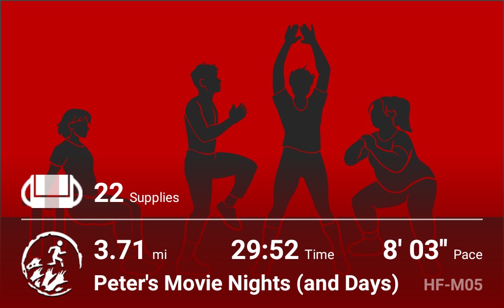 Another monthly update, getting off my unintentional hiatus in Zombies Run (and starting homefront while I’m at it), and finally starting to use my workout randomizer to get two videos in per week instead of only one.