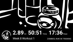 With Zombies Run, I’ve done a few more homefront exercises, gotten the full points possible on the Ring Fit’s multitask mode without syncing it over three days, and nearly completed the 5K “training” app.