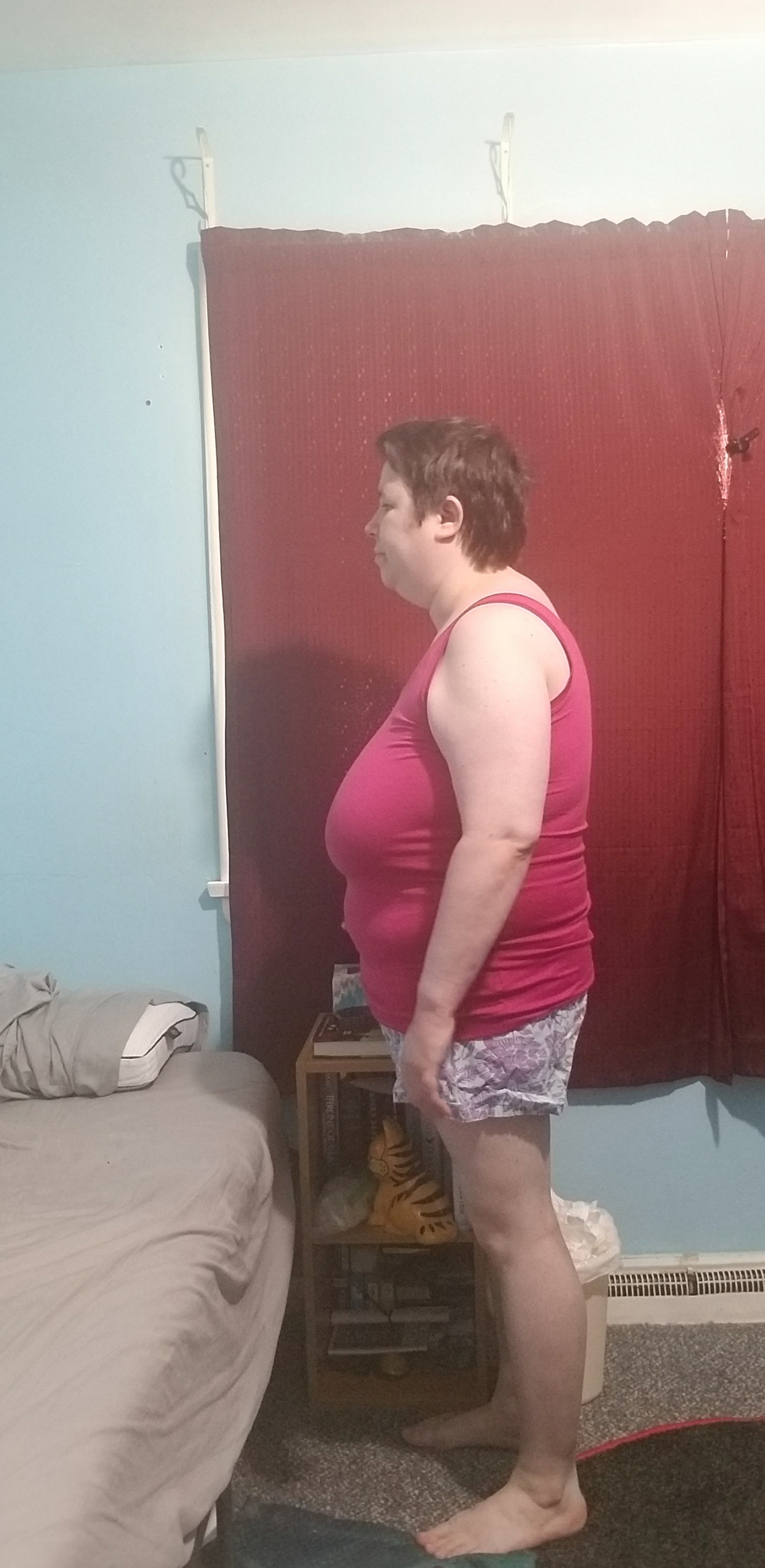 Hmm… maybe a tiny change from January to now? Hard to say if I’m actually getting smaller or if my boobs were just sticking out more in the first photo due to the position of my bra. Though I’m not seeing that weird back bulge in the June photos, so… visual progress?