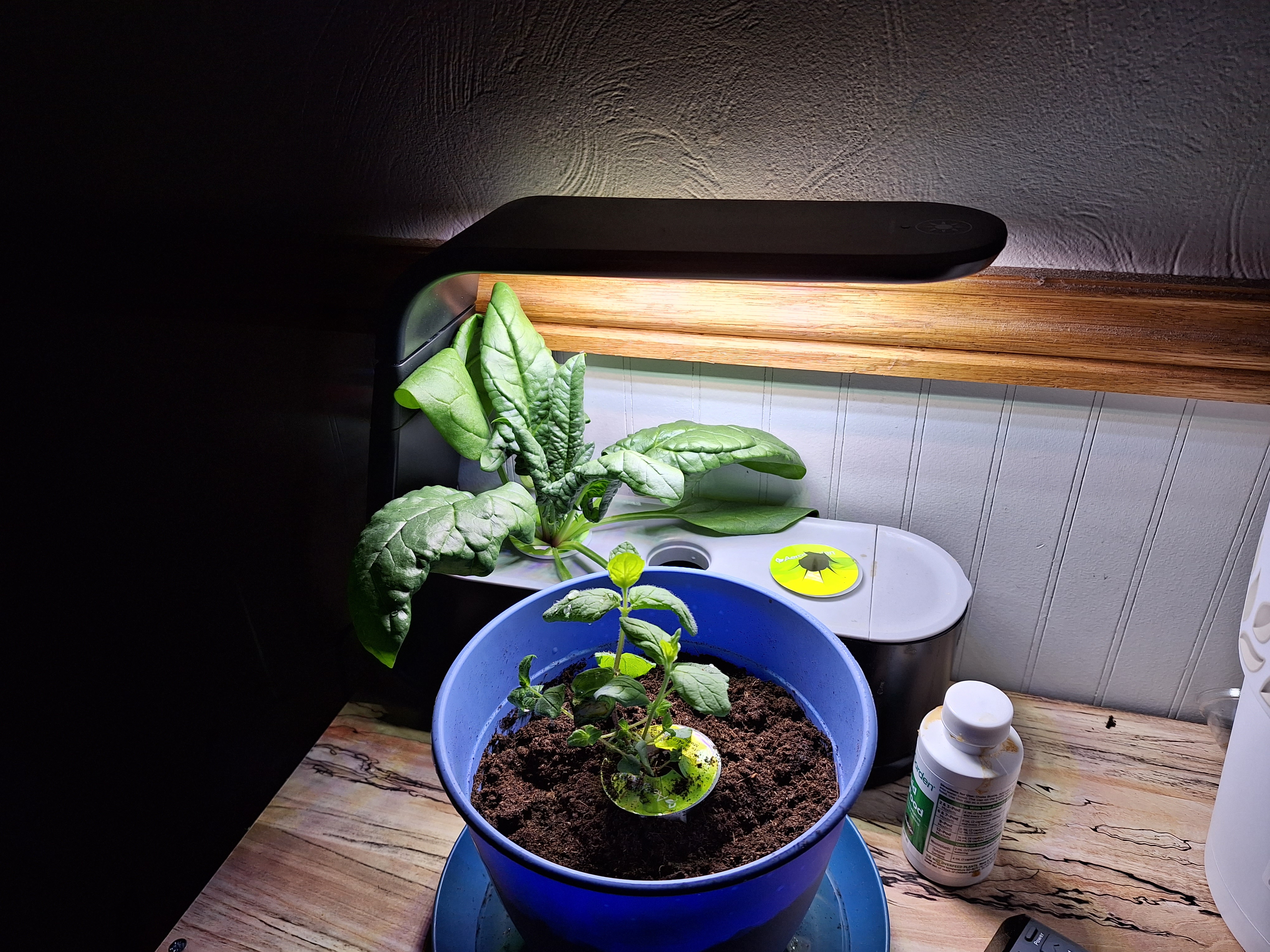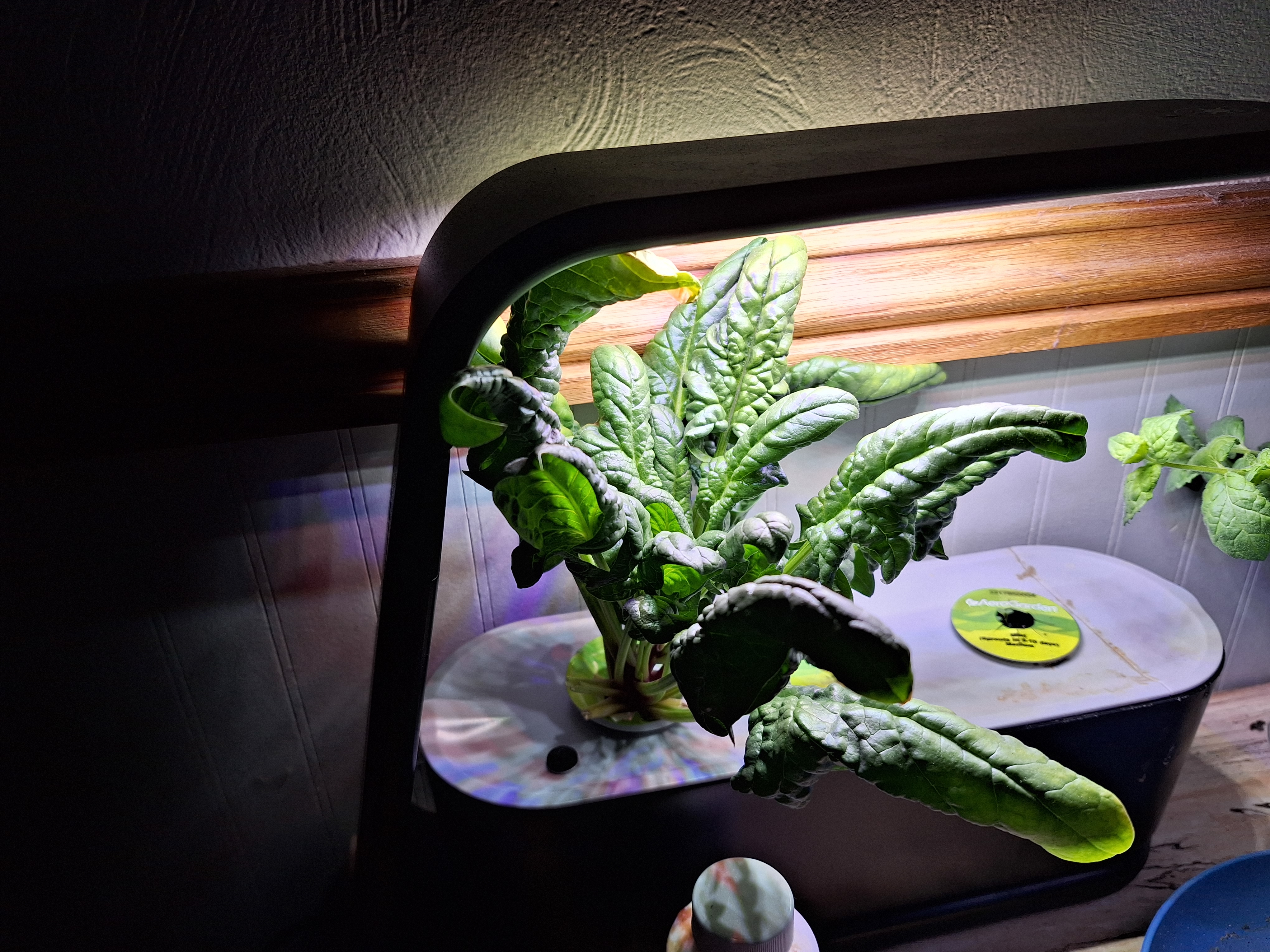 Going back to the “I wish I had more shelf space for another Harvest,” I’d like to look into growing yet more spinach options so I can harvest it sooner, like when it’s actually small enough to be baby spinach, without taking out an entire plant. I can add bought greens to the stuff I’m growing but I don’t want to….